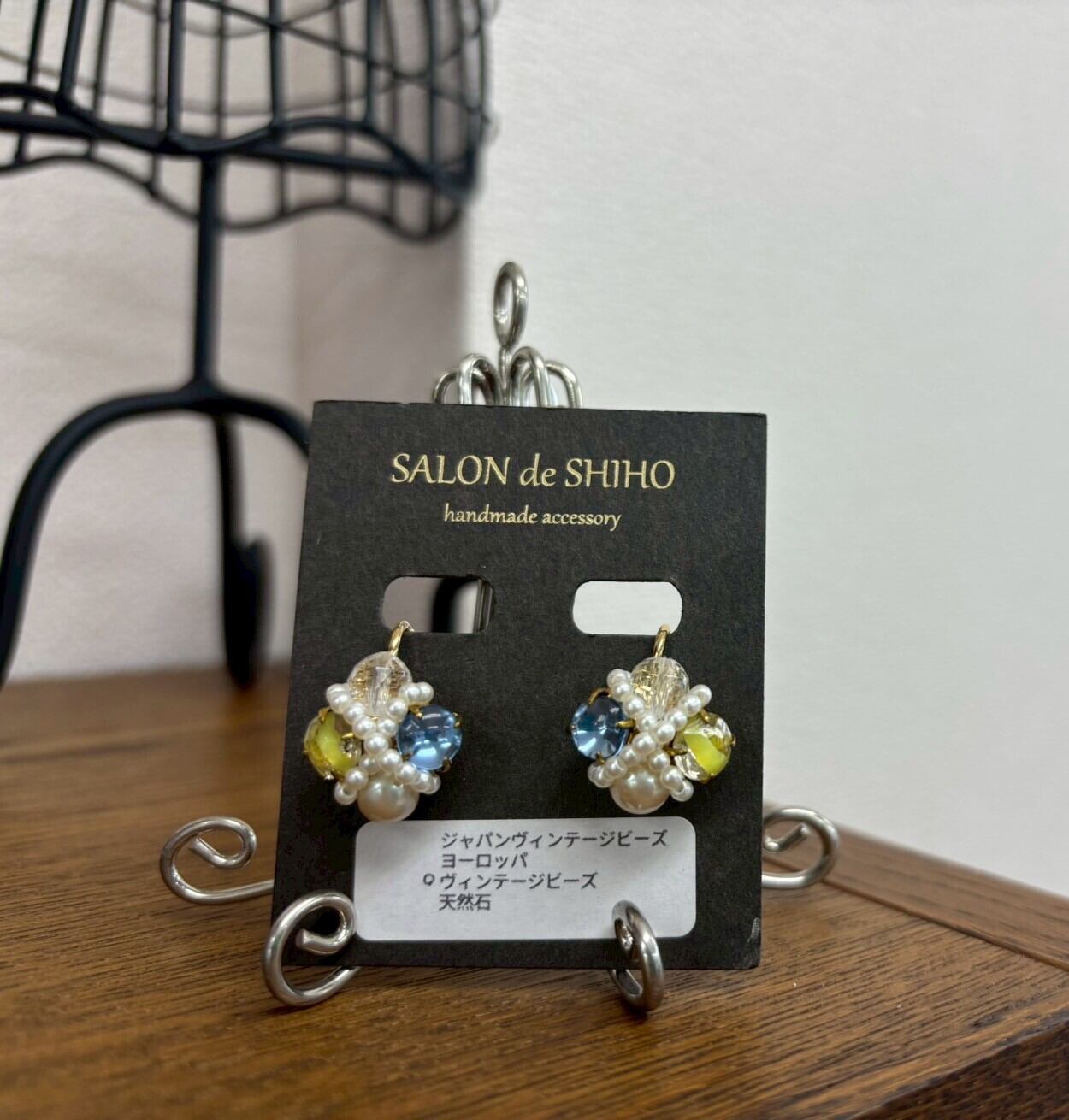 90年程前の蔵出しヨーロッパヴィンテージュース、ジャパンヴィンテージビーズに水晶を組み合わせた洗練されたイヤリングです。
