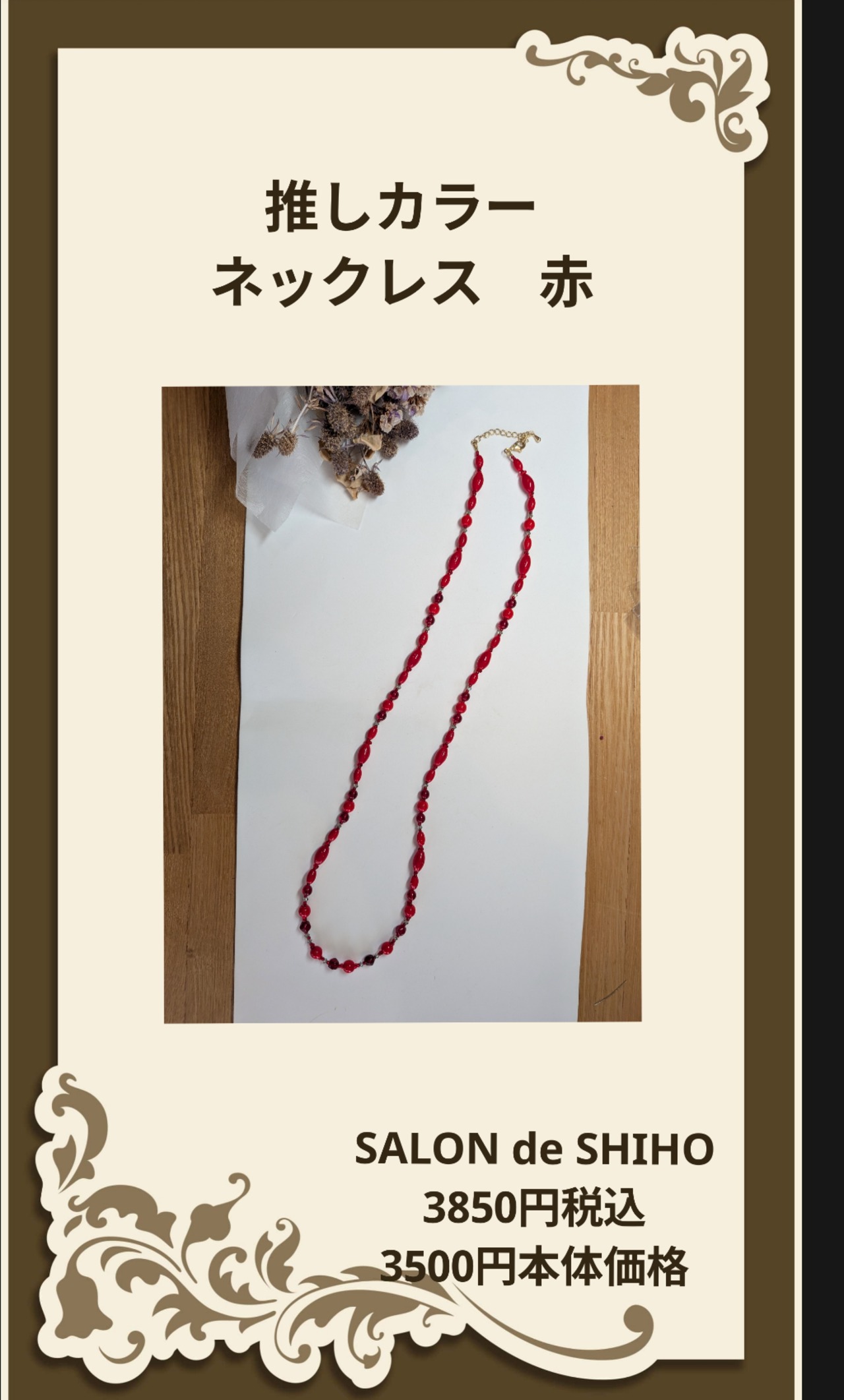 ぜひ、推しカラーネックレス 赤 キットを手に入れて、あなたのスタイルに魅惑的で洗練された印象をプラスしてください。この美しいデザインが、あなたのコーディネートに新しい魅力を引き出すことでしょう。