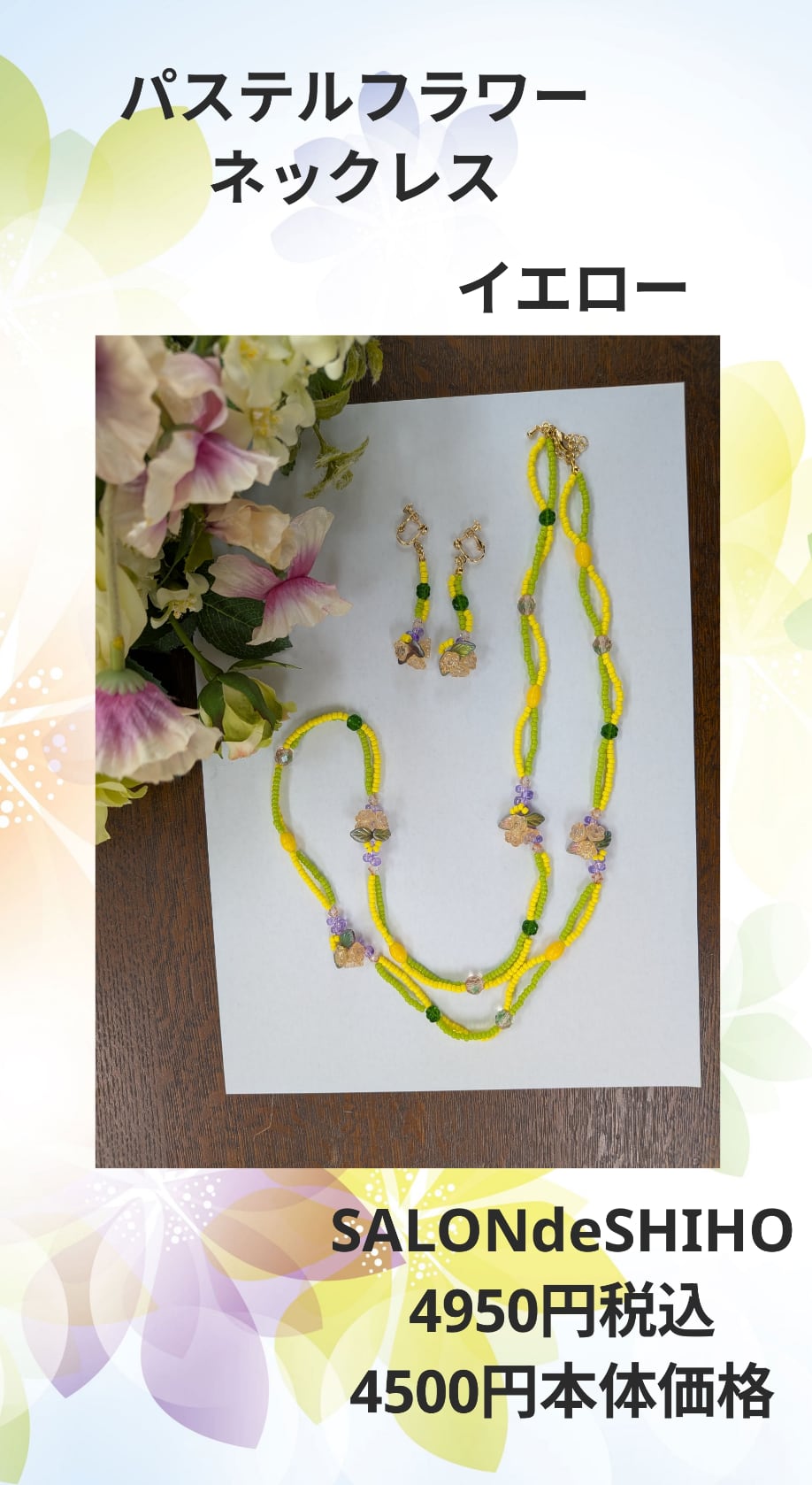 パステルフラワーネックレスイエローキット ビーズフレンド掲載作品