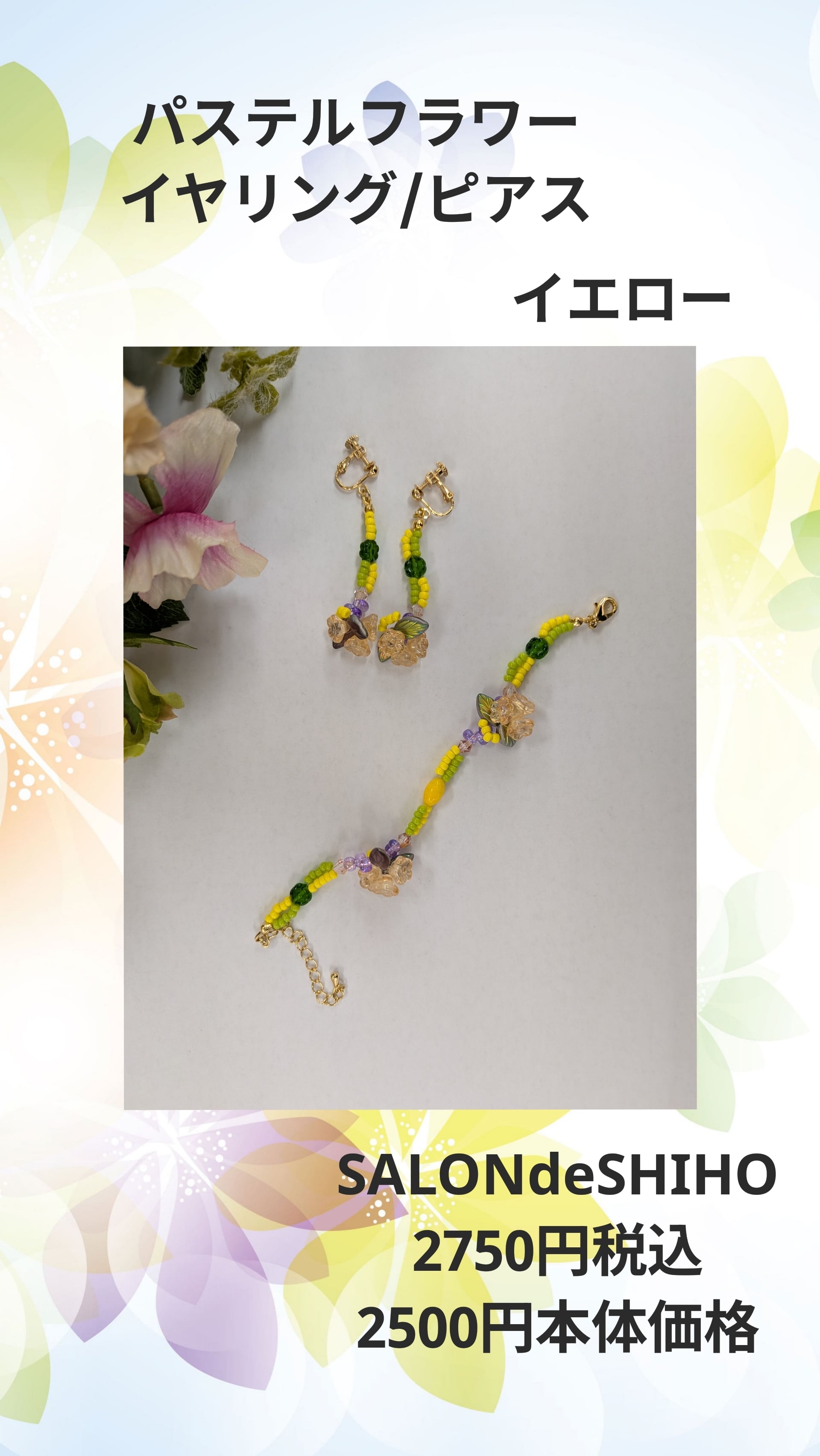 ## パステルフラワーイヤリングピアスキットイエロー ビーズフレンド掲載作品